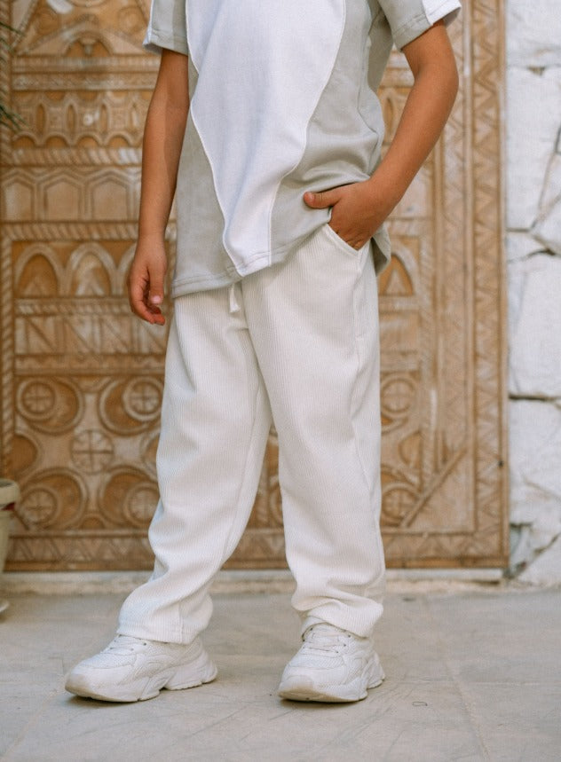 تيشرت ابيض وبنطلون ابيض طقم عملي للأطفال بتصميم عصري ولون ابيض انيق يوفر راحة يومية وجودة ثابتة، مناسب للاستخدام المتكرر وسهل التنسيق مع مختلف الملابس والأوقات اليومية المدرسية دائماً.